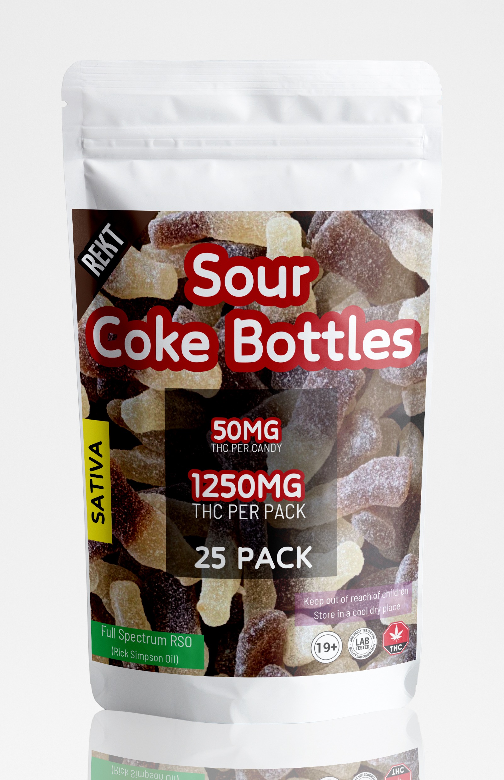 REKT Sour Coke Bottles Gummies 1250mg THC Sativa (25 x 50mg THC)
